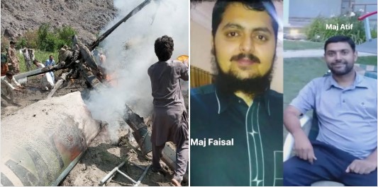 آئی ایس پی آر نے بتایا کہ ہیلی کاپٹر میں موجود تمام عملہ جامِ شہادت نوش کر گیا، شہید ہونے والوں میں پائلٹ ان کمانڈر میجر عاطف، کوپائلٹ میجر فیصل، فلائٹ انجینئر نائب صوبیدار مقبول، کریو چیف حوالدار جہانگیر اور کریو چیف نائیک عامر شامل ہیں۔