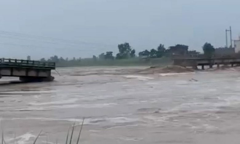 ظفروال نالہ ڈیک پر موجود ہنجلی والا پل سیلاب کے پانی میں بہہ گیا