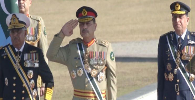 آئی ایس پی ار کے مطابق جی ایچ کیو میں پروقار تقریب میں فیلڈ مارشل سید عاصم منیر، نشان امتیاز (ملٹری)، ہلال جرات، چیف آف آرمی اسٹاف و چیف آف ڈیفنس فورسز کو تینوں مسلح افواج کے دستے کی طرف سے گارڈ آف آنر پیش کیا گیا۔