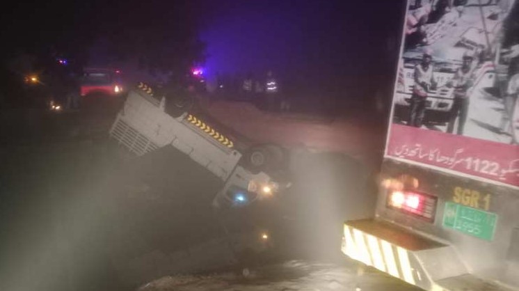 سرگودھا(اے ون نیوز) شدید دھند سے حد نگاہ متاثر ہونے پر مزدا ٹرک خشک نہر میں جا گرا جس کے نتیجے میں 14 افراد جان کی بازی ہار گئے۔