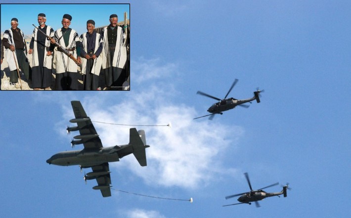 سوشل میڈیا پر وائرل ہونے والی ویڈیوز میں دیکھا جا سکتا ہے کہ مسلح قبائلی اپنی بندوقوں سے فضا میں پرواز کرتے امریکی ہیلی کاپٹرز کو نشانہ بنا رہے ہیں۔